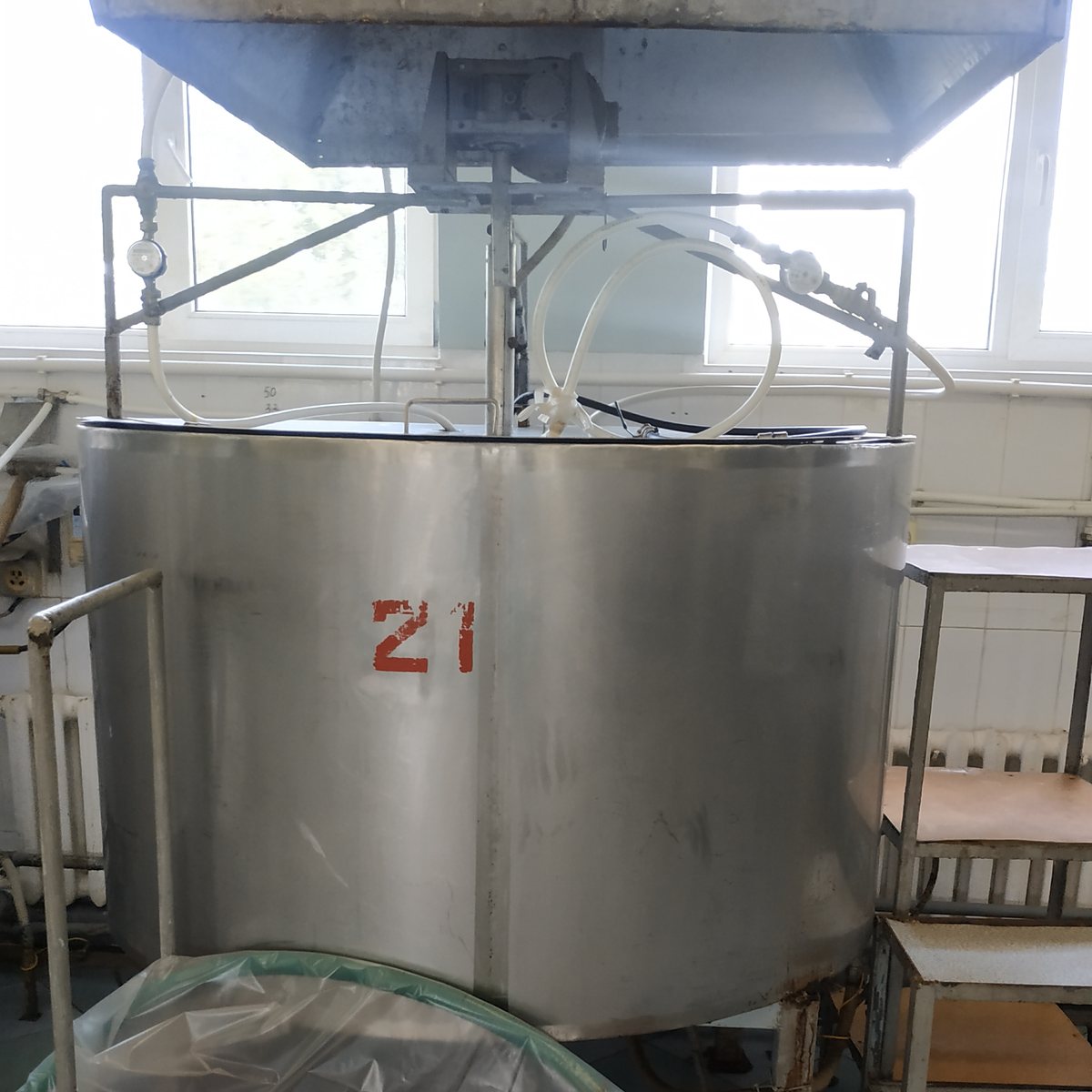 Варочный котел РВ-1-3Т, вместимость: 1 м³. Резервуар вертикальный РВ-трёх стенная теплоизолированная ёмкость, состоит из ванны внутренней, рубашки, змеевика расположенного под днищем ванны, теплоизоляции, мешалки со скребками, наружной облицовки. В конструкции резервуара предусмотрена переливная труба, которую необходимо соединить с канализацией.
